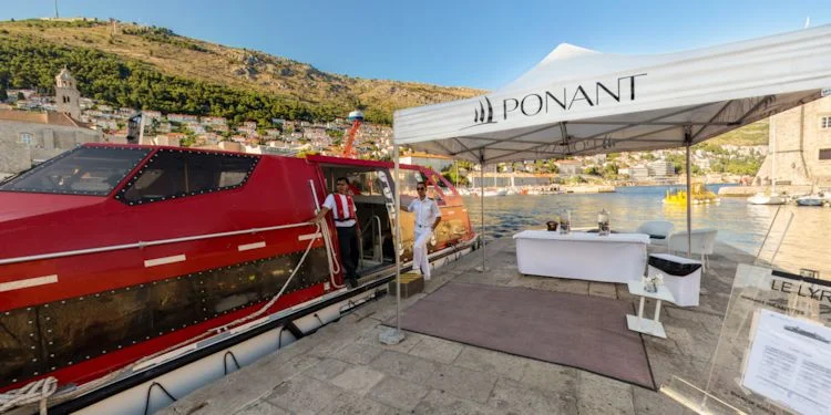 Tender approaching wharf in the old town